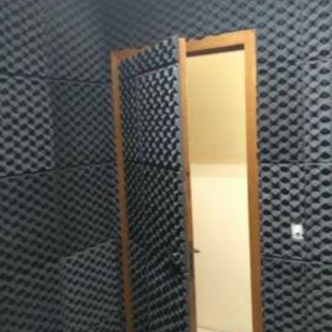Espuma acústica perfilada em poliuretano, tipo caixa de ovo. Cor natural grafite anti-chama.